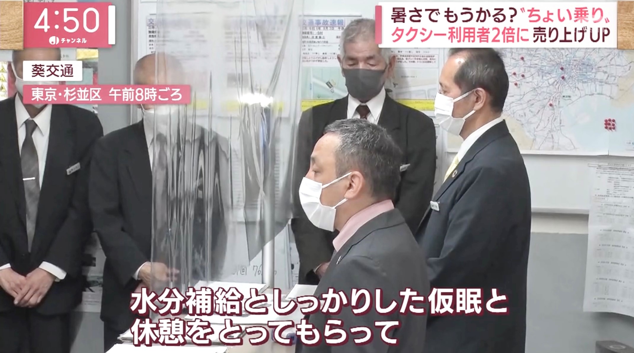 8/16テレビ朝日の『スーパーJチャンネル』では猛暑でのタクシー利用について取り上げて頂き、8/18テレビ東京の『ワールドビジネスサテライト』では女性乗務員採用について取り上げられました。